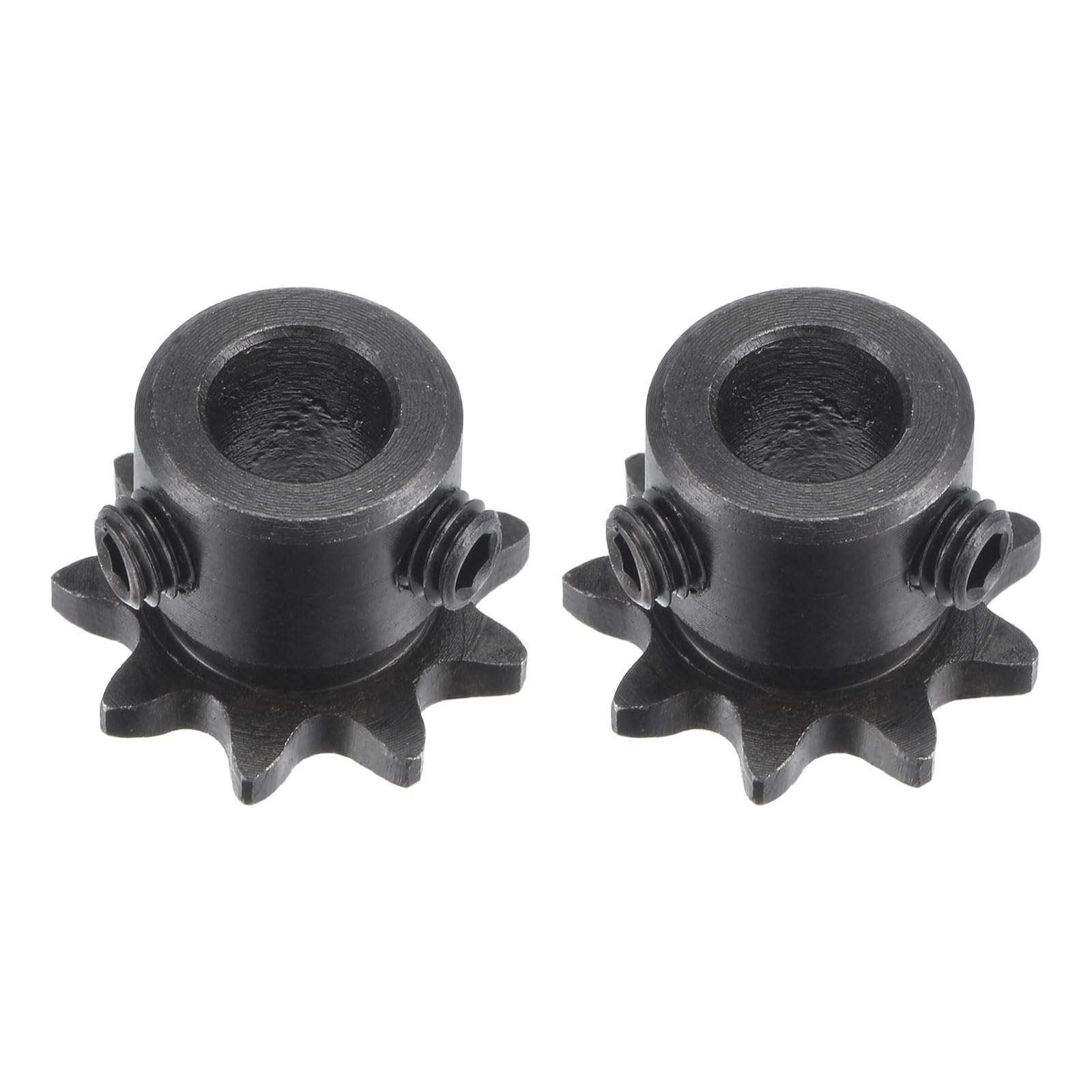 Acxico 2Pcs 8mm Bore 10 Teeth 10T Metal Pilot Motor Gear Roller Chain Drive Sprocket