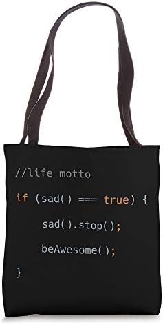 Life Motto Funny Code Programming Coding IT Gift Black Tote Bag
