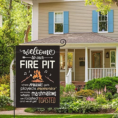 AVOIN colorlife Welcome To Our Fire Pit Camping Garden Flag 12 x 18 Inch Double Sided, RV Campsite Campfire Camper Yard Outdoor Decoration