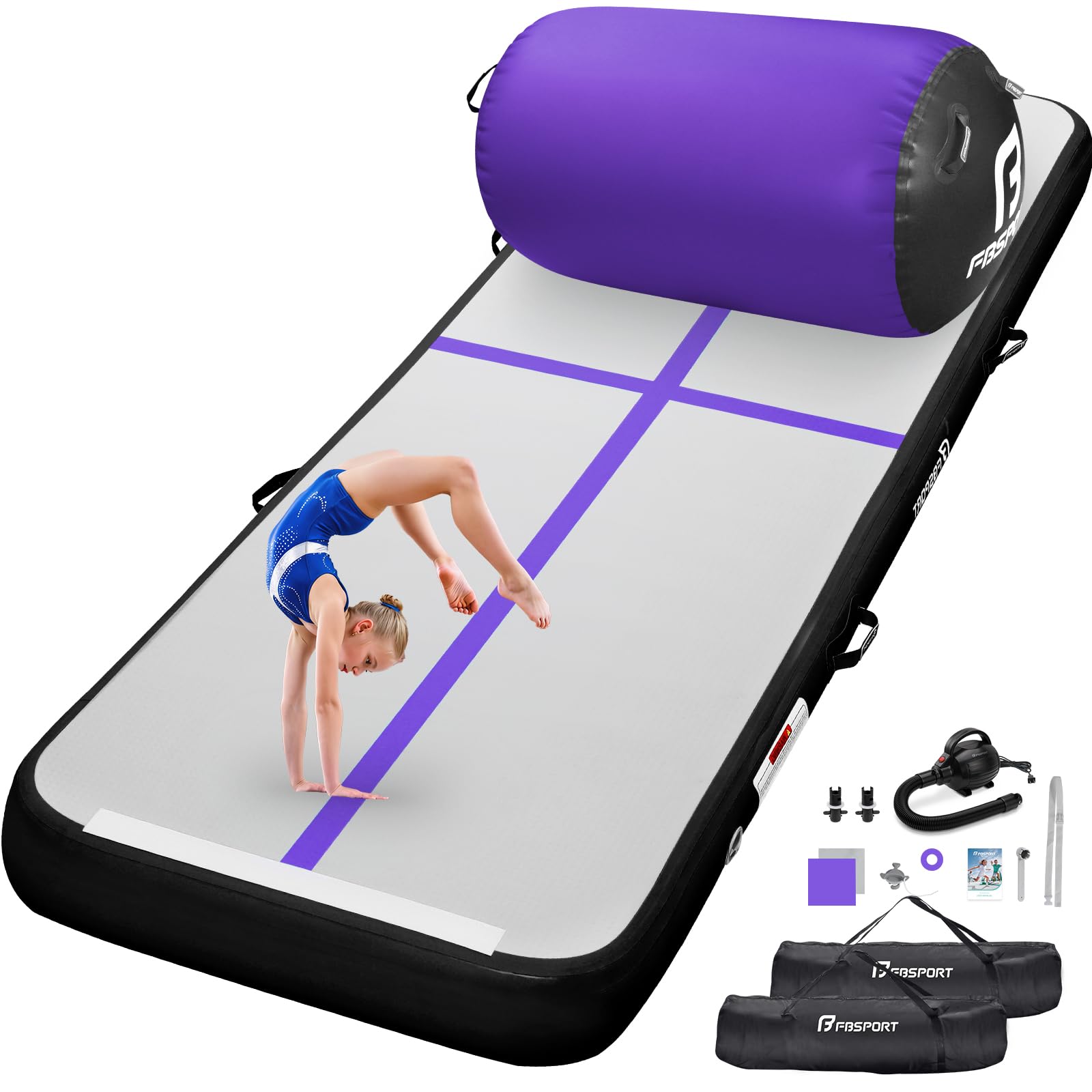FBSPORT Inflatable Air Gymnastics Mat Training Mats 4/8 inches Thickness Gymnastics Tracks for Home Use/Training/Cheerleading/Yoga/Water with Pump