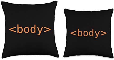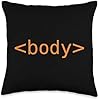 Body HTML Code Funny Programming IT Gift Black Throw Pillow