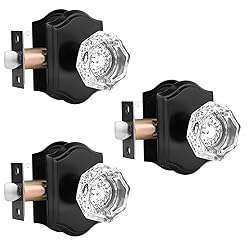 - Crystal Passage Door Locks Interior Hall Closet Door Knobs in Matte Black Appearance and Finish Clear crystal knob Matte Black rosette finished. For your doors in any color. Make your home special&charming Octagon shape. Contemporary design. Comfortable for holding Knobs made with durable clear glass,round rosette made of zinc alloy. Sturdy and long lasting Interior Door Using The passage lock works for both right and left handed doors. Ideal for door where a key is not necessary like hallway,closet,storeroom,pantry Adjustable Latch The backset is adjustable 2-3/8-Inch or 2-3/4-Inch. The lockset is made to fit doors between 1-3/8-Inch and 1-3/4-Inch thick. Package Include 3 Passage Knobs (including exterior and interior knob) Latch and strike plate Matching screws Installation instruction Easy to Install Installed with a screwdriver in minutes.