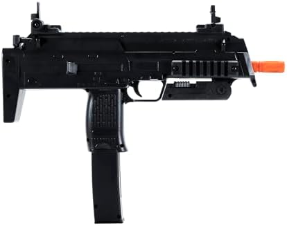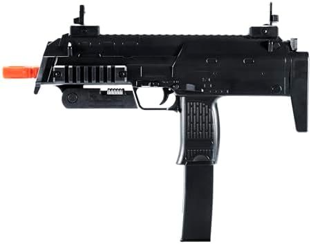 Spring powered, single action 6mm BB airsoft gun. High capacity magazine allows you to shoot 350 rounds without reloading (two 350-round magazines included). Fixed front sight and flip-up rear sight. Features usable Picatinny rails for mounting accessories; Compact, lightweight design. Shoots 6mm plastic airsoft BBs at up to 230 fps.