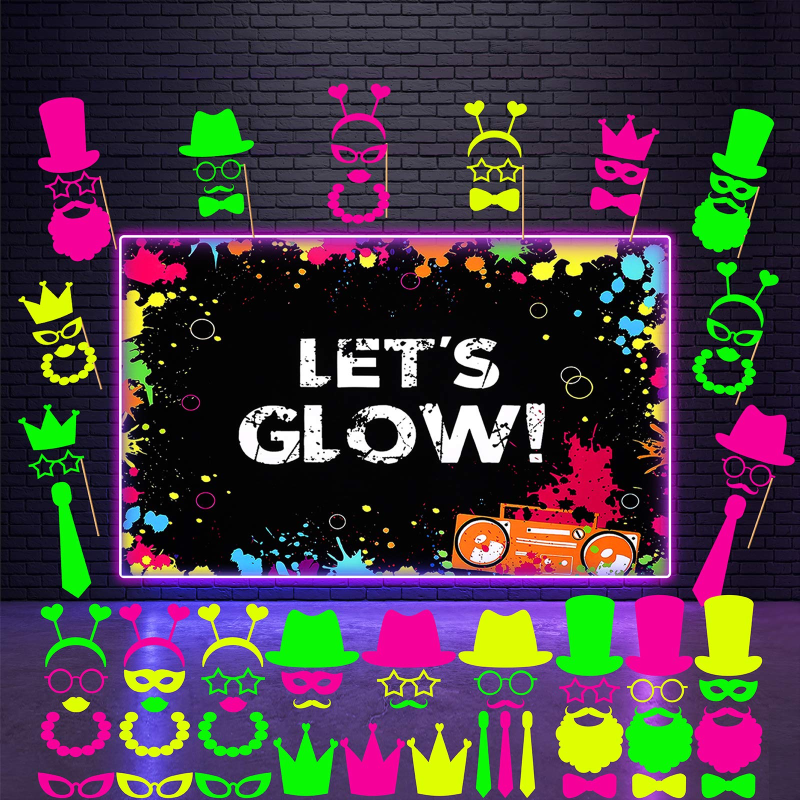 - What you receive: 30 pieces of fluorescent photo booth props are included in the package; These neon glow photo booth props can keep you away from getting bored because you can use them to take interesting photos; Different shapes and eye-catching colors will fit your neon theme or glow party very well