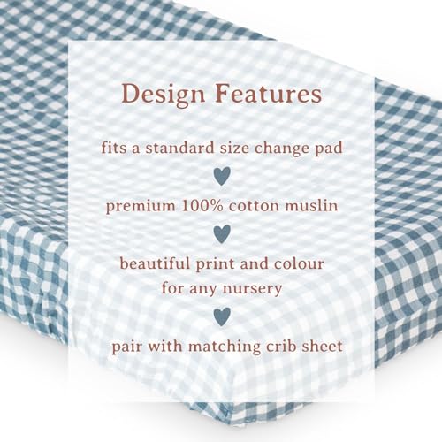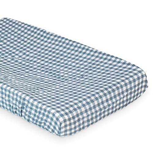 Lulujo Muslin Change Pad Cover - Fitted Changing Pad Cover for Boys and Girls -32"x17", 1 Pack (Navy Gingham)