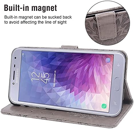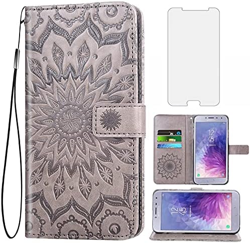Phone Case for Samsung Galaxy J4 2018 Wallet Cases with Tempered Glass Screen Protector and Sunflower Leather Slim Flip Cover Card Holder Stand Cell Accessories Glaxay J 4 Women Men Gray