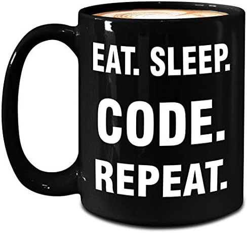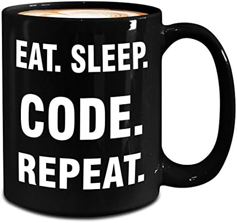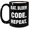 Computer Programmer Gifts - Eat Sleep Code Repeat - Mug - Large 15oz Black Ceramic Coffee Tea Cup - Office Funny Cute Gag - CIS Software Developer Engineer Coder Programming