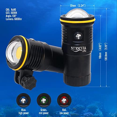 - 🔆Deep sea waterproof and anti-corrosion: With high strength shell, 6061-T6 Aircraft grade aluminum material, NSV60 scuba dive video light is resistant to long-time deep sea salt water corrosion. The professional optical analysis and thickened tempered glass and multiple waterproof rings make it withstand pressures up to 100 meters underwater.