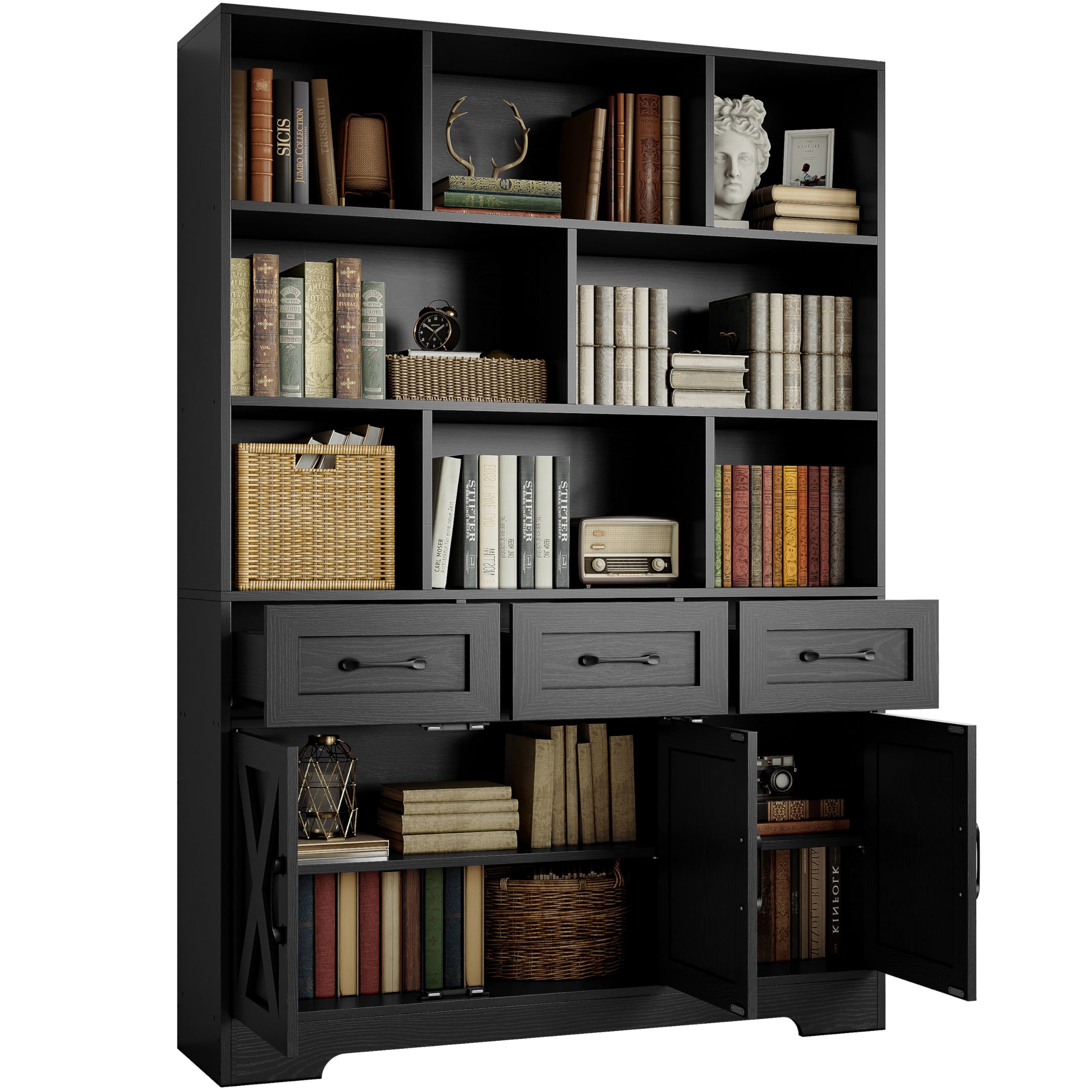 IRONCK Bookshelf Double Wide 55 in 3-Tier, Industrial Bookcases, Wood and Metal Bookshelves, Book Shelves for Home Office Decor Display