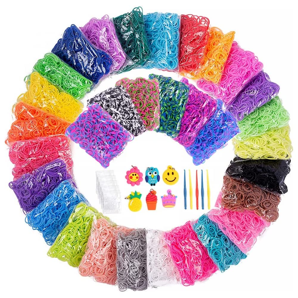 Kit de repuesto de banda de goma de telar de 15000+ en 31 colores, kit de fabricación de pulseras para niños de manualidades DIY, con 13500 bandas de goma, 500 clips en forma de S, 15 lazos, 6 ganchos de crochet, 2 Y telares