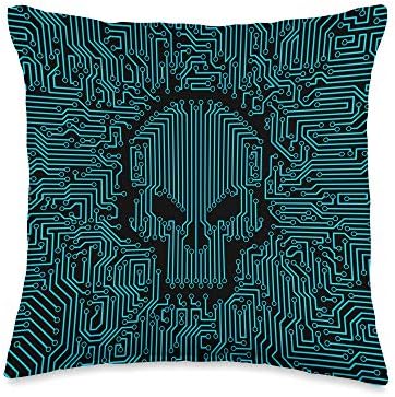 Bad Code Computer Circuit Board Dark Hacker IT Skull Throw Pillow