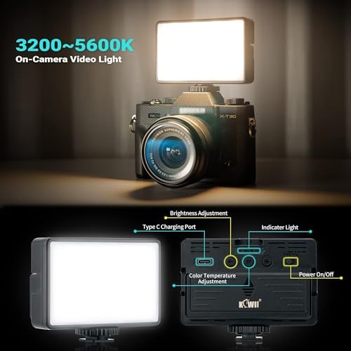 Ultra Bright 3200-5600K On-Camera LED Video Light for Canon EOS R100 R50 M50 M6 Mark II Sony ZV-1 II ZV-E10 A7C II A6600 A6500 Fujifilm X-S20 X-T200 X-T30 II X-T5 X-T4 Nikon Z30 Z50 Z6 II Z7 II