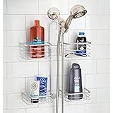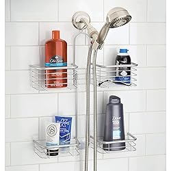 - Upgrade your bathroom storage with the iDesign Forma XL Handheld Hose Hanging Shower Caddy. This all-in-one organizer features four storage shelves to keep bathroom necessities such as shampoo and conditioner bottles, shower gel, bar soap, toothbrushes, toothpaste, and more within reach in the shower or bathtub. This innovative shower caddy is designed with space between the shelves to accommodate handheld shower head hoses. The open wire design provides proper airflow and allows items to dry more efficiently after use, while the non-slip grip and integrated suction cup ensure a secure hold in wet or dry conditions. Simply place the organizer over the top of the shower head and push the suction cup into place on the wall to set up - no mounting or hardware required! The durable steel wire construction with polished chrome finish stands up to every day use and is easy to clean with mild soap and water. Measuring 23.62" x 16.99" x 4.83", this storage caddy adds instant organization in unused space in the shower. With iDesign by InterDesign, you can #LiveSimply every day.
