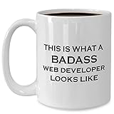 Funny Web Developer Coffee Mug Tea Cup Large 15oz Ceramic White Gifts - Site Dev Development Programmer Coder Software Coding Programming Cute Gag Appreciation Idea - Badass Looks