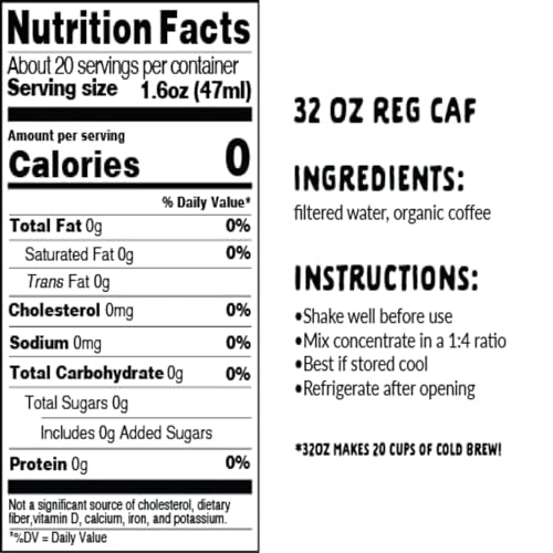 Explorer Cold Brew Organic Liquid Coffee Concentrate, Classic Regular Caffeine, Drink Iced or Hot, 32 fl oz, Makes 20+ Cups