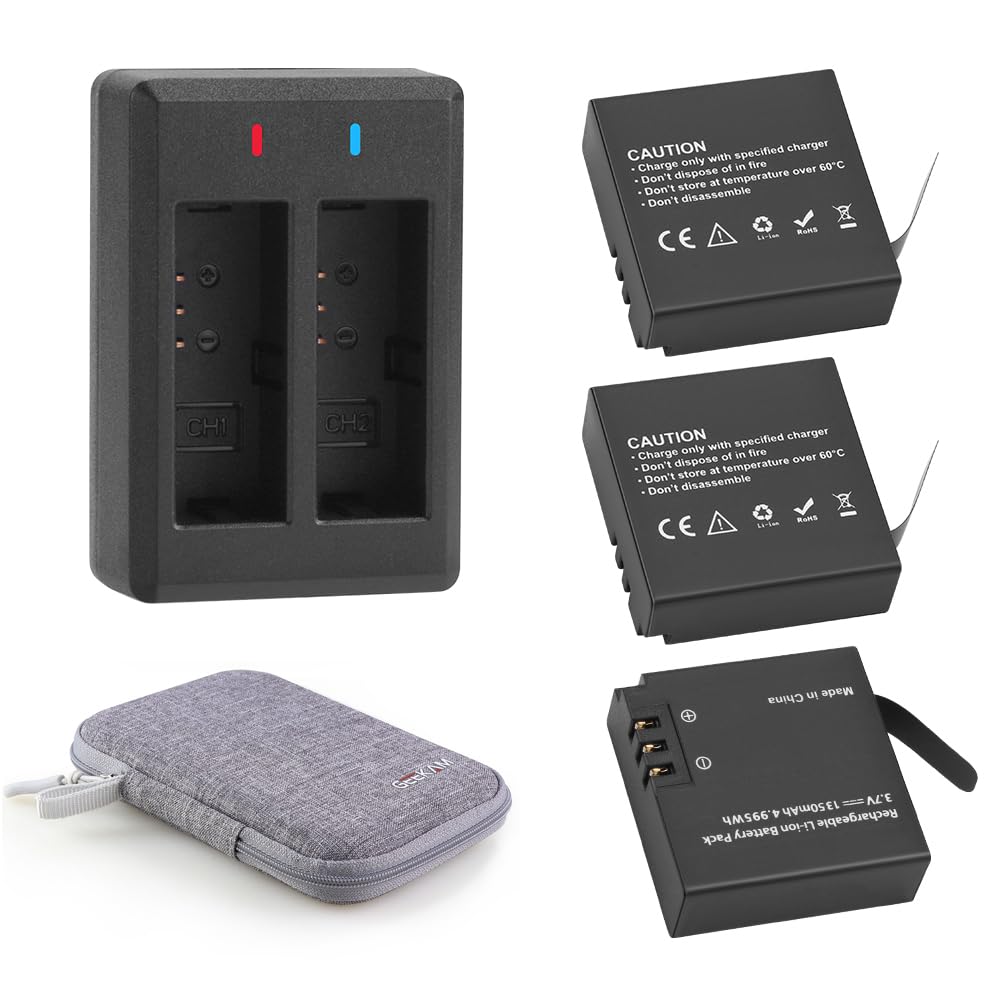 Action Camera Battery Pack, 1350mAh Rechargeable Battery(3-Pack) with USB Dual Charger for Sports Camera, Compatible with AKASO EK7000/CAMPARK/CROSSTOUR/APEMAN and More