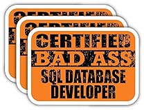 - These bad ass stickers are a cool and unique gift idea for friends, relatives, co-workers, and yourself! Stick it on any smooth surface to celebrate being an awesome Sql Database Developer and show it off with a little humor. There are 3 stickers included in each order and each sticker is 2" x 3". ----> Sticker Material Information: Our stickers are printed on 3M Scotchlite Graphic Film which gives graphics bright sharp visibility. Our sticker's durablility flexible construction and on-demand removability for up to four years makes them ideal for any purpose. All our products are made in the USA!
