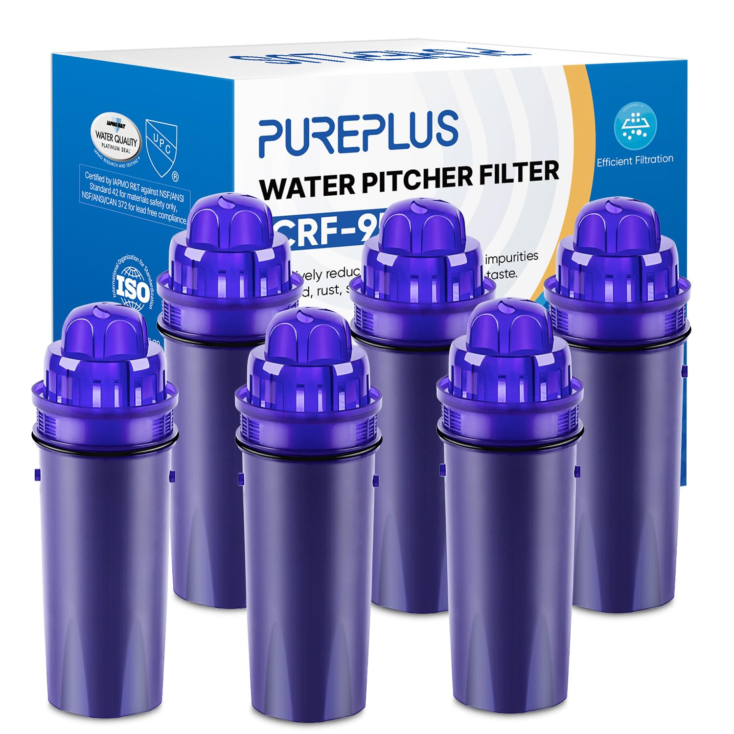PUREPLUS NSF Certified Pitcher Water Filter, Replacement for Brita® Pitchers and Dispensers, Compatible with standard Mavea® 107007, Classic 35557, OB03, and more (Pack Of 6)
