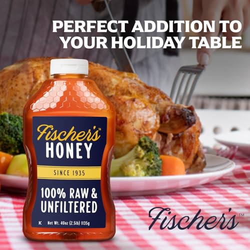 Fischer's 100% Pure, Raw & Unfiltered Honey, 40 oz – USA Made Honey – All-Natural Sweetener – Rich Flavor Profile, Packed with Nutrients