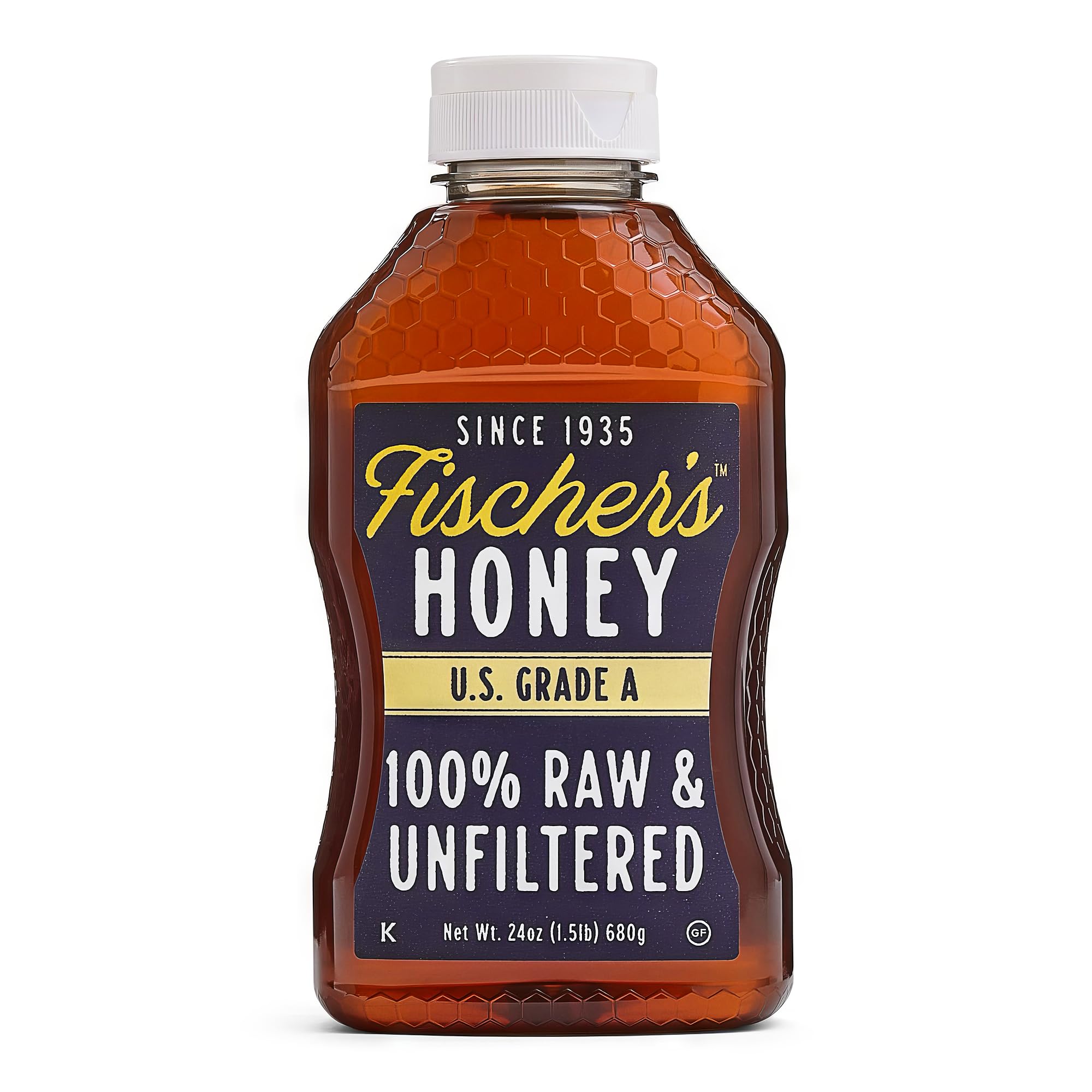 Fischer’s Raw Honey is 100% pure, unprocessed, honey made in the USA, and packaged in a convenient 40 oz squeeze bottle for easy use. Responsibly sourced from beekeepers all over the U.S. dedicated to bee welfare, our honey is 100% raw, unfiltered, and unpasteurized—no additives, syrups, or flavors. nOur all-natural honey serves as a sweetener and sugar substitute, perfect for drizzling on fruits, yogurt, toast, or pancakes. Its rich flavor and sweetness elevate your tea, coffee, and desserts, and give a distinctive twist to your dishes. nWith naturally preserved vitamins, minerals, and antioxidants, our unfiltered raw honey offers full nutritional benefits. Over time, it may crystallize, showcasing its pure origin.nExperience the unadulterated sweetness of raw unpasteurized honey, straight from the hive to your table. Available on Amazon and grocery stores across the country, our honey is the essence of quality and authenticity. Treat yourself to the pure indulgence of raw, unfiltered honey—nature's golden elixir.
