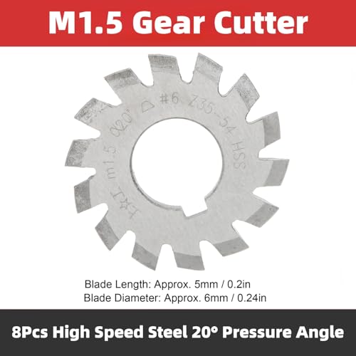 8Pcs Gear Cutter High Speed Steel Milling Cutter 20° Pressure Angle Cutting Tool Industrial Supplies M1.5 5mmx6mm