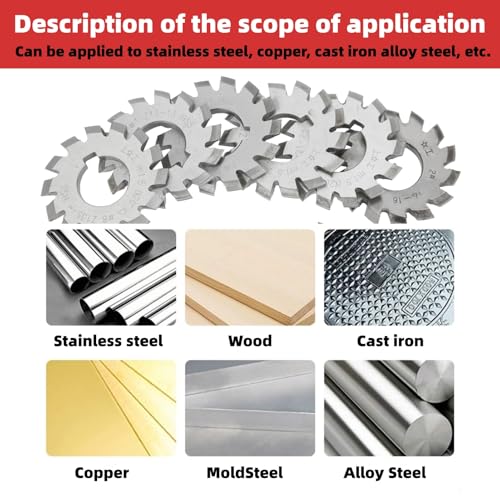 - Package Quantity :There are a total of 8 sets of gear cutting tools to suit different numbers of teeth.