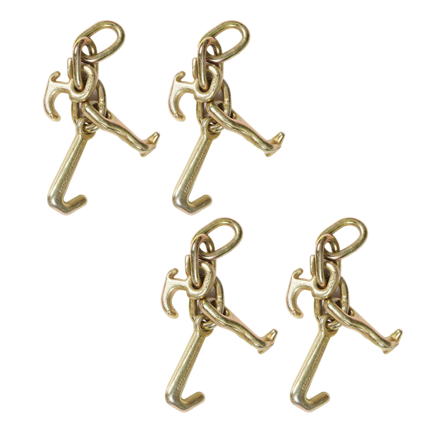 - 5/16 x 6FT Grade 70 chain assembly one end with Cluster of One (1) T J Hook and One (1) Grab Hook, and the other end with a Long Shank J Hook