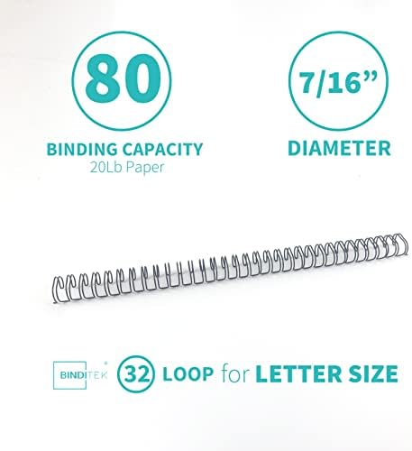 Binditek 100 Pack Double Loop Wire Binding Spines, 7/16Inch Binding Wire for Letter Size, 3:1 Pitch, 80 Sheet Capacity, 32-Loop, Black, for Students and Coworkers
