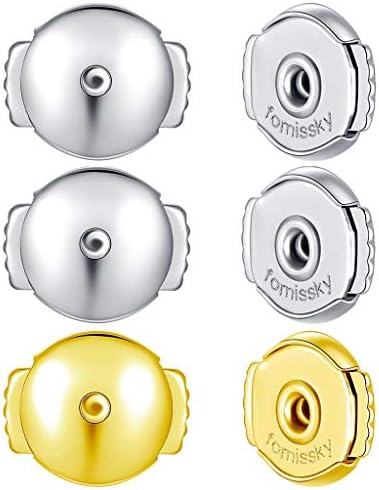 Fomissky-sisa Secure Earring Backs for Studs, 3 Pairs Locking Earring Backs Replacements 18K White Gold/Gold Plated