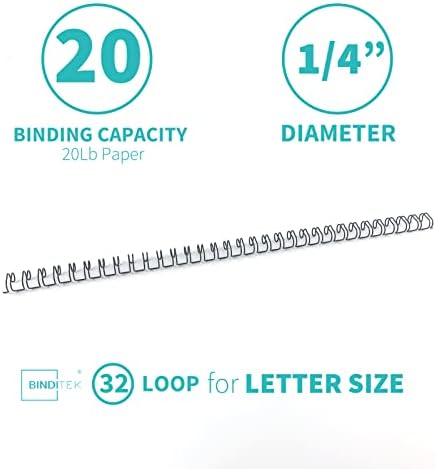 Binditek 100 Pack Double Loop Wire Binding Spines, 1/4Inch Binding Wire for Letter Size, 3:1 Pitch, 20 Sheet Capacity, 32-Loop, Black, for Students and Coworkers