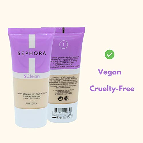 Sephora Collection Base de Maquillaje para Piel Limpia y Radiante - Tamaño Completo para Mujeres con Polvo de Té Matcha y Vitamina C - Tono 1