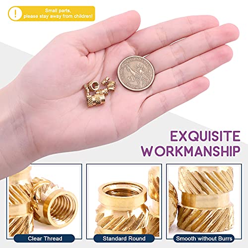 - [ Why You Choose Us]: These Brass Threaded Insert Embedment Nuts can be installed into the tapered holes of the threads by ultrasound or heat, or moulded during injection. The material of the nuts is brass, which can resist heat. Hardness and toughness are more than 10 times higher than aluminum, high processing difficulty, complicated production process.