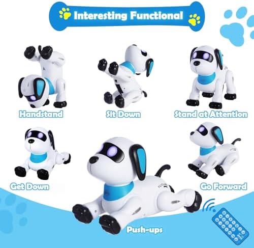- 【Material de alta calidad】Las extremidades flexibles mejoran la destreza y la fluidez de los movimientos de este pequeño robot. El juguete para perros robot para niños está hecho de plástico ABS duradero e irrompible para garantizar un rendimiento duradero, seguro y no tóxico. Con un cuerpo liso y redondo, sin esquinas afiladas, totalmente seguro para los niños.