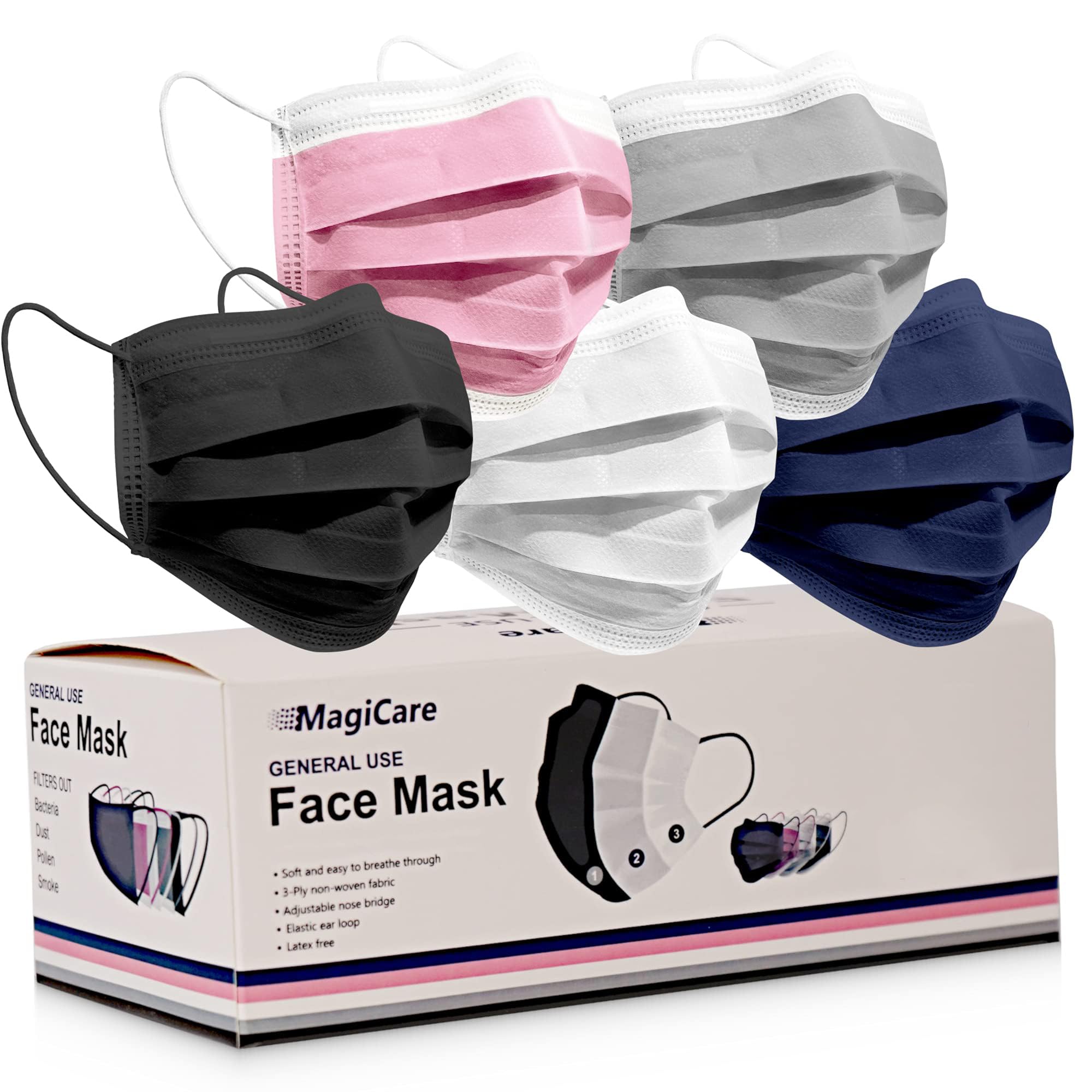 MAGICARE Made in USA Masks - Blue Disposable Face Masks - Medical Grade (ASTM Level 1) - Premium 3 Ply Face Masks Disposable - Comfortable, Soft, Breathable Face Mask for Adults - 50ct Box
