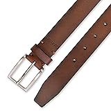 CLASSIC DESIGN: Look and feel your best with this classic dress belt. The smooth adjustable strap and sleek buckle make it easy to customize the fit so you can be sure you're always wearing the perfect belt. CK STYLE: This is sure to become your new essential dress belt for weddings, family dinners, and other social occasions. This Calvin Klein belt will match any button-up or formal suit look in your wardrobe. FEATURES: The belt has a dress tip and a 1.18" wide strap to easily fit in your belt loops. For best care, spot clean only. SIZE: For best fit, order belt size that is two inches larger than your pant size. For example, if your pant size is 36 inches, order belt size Large (38-40). Available in Small (30-32), Medium (34-36), Large (38-40), X-Large (42-44)