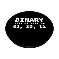 BINARY IT'S AS EASY AS 01, 10, 11 Binary Code joke for a software developer, coder or computer geek who loves algorithms and program logics Coding gift for developers and programmers who love developing applications and programming languages. There are 10 types of people who will understand this computer joke. PopGrip with swappable top; switch out your PopTop for another design or remove it completely for wireless charging capabilities. (Not compatible with Apple MagSafe wireless charger or MagSafe wallet.) Expandable stand to watch videos, take group photos, FaceTime, and Skype handsfree. Advanced adhesive allows you to remove and reposition on most devices and cases. Note: Will not stick to some silicone, waterproof, or highly textured cases. Works best with smooth, hard plastic cases. Will adhere to iPhone 11, but not to the iPhone 11 Pro nor the iPhone 11 ProMax without a suitable case.