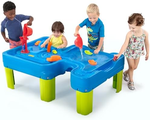 Mesa de juegos acuáticos Simplay3 Big River and Roads, mesa de actividades al aire libre con juguetes de seguimiento para niños pequeños y niños, 9 accesorios incluidos, fabricada en EE. UU.