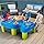 - para que los niños pequeños jueguen cómodamente. El espacio de la mesa de juegos para actividades acuáticas dentro y fuera facilita que muchos niños jueguen en colaboración y también que los niños pequeños puedan llegar a todos los espacios de chapoteo interiores.