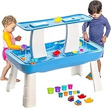 - JUGUETES PARA MESA DE AGUA: 9 divertidos accesorios para juegos acuáticos que incluyen cuatro botes de juguete, dos carros de agua de juguete, dos vasos para verter agua y una rueda para salpicaduras de agua. También es compatible con una sombrilla con una barra de 7/8 pulgadas de diámetro (sombrilla no incluida)
