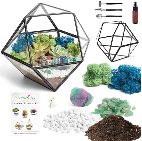 - STYLISH GLASS TERRARIUM DESIGN: This DIY terrarium kit for adults & kids includes a modern geometric glass terrarium container to showcase your plant and décor beautifully. Durable, transparent, and elegant—perfect for desks, shelves, and entry tables.