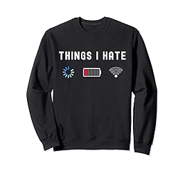 If you hate buffering, low battery and weak WI-FI internet connection. This Funny unique novelty eyecatcher Design is a great gift for web developers, programmers, gamers, computer nerd, pc, admin, geek outfits for men and women that love tech humor jokes. Things I Hate Programmer Gamer Computer Nerd product makes a great birthday gift, Christmas gift for Men, Women and Kids. 8.5 oz, Classic fit, Twill-taped neck