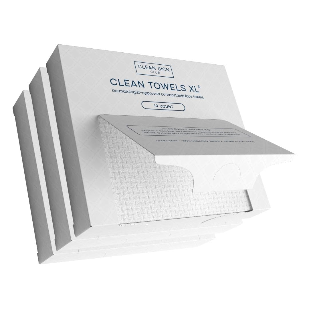 Clean Skin Club Bamboo Viscose Clean Towels® XL 100% USDA Biobased Face Towel, Disposable Face Towelette, Makeup Remover Dry Wipes, Ultra Soft, 50 Ct, 1 Pack