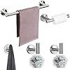 • 5-PIECES COMBINATION: 16 inches towel bar, toilet paper holder and 3 multi-purpose hooks; The combo can perfectly meet your all needs in daily life