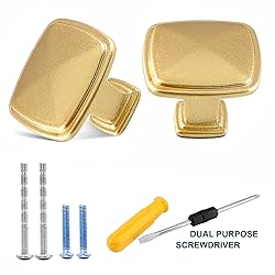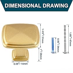 - Cionyce is a company that pursues high-quality products and takes pride in customer satisfaction, and strives to provide the safest, most satisfactory and most convenient shopping experience for our customers. Cionyce 25 Pack Brushed Brass Cabinet Knobs, 1-1/5" Square Knobs for Dresser Drawers Kitchen Cabinet Gold Knob Pull Handle Specification Total Size: 1-1/5" x 1-1/5" x 1" / 31 x 31 x 26mm(L*W*H) Base Size: 0.55" x 0.55" / 14 x 14mm(L* W) High-Quality Material: High-quality aluminum alloy Package Contains 25 x cabinet knobs 25 x M4x0.95" screws 25 x M4x1.85" screws(adjustable length) Why Choose Cionyce? Exquisite appearance, classic square cabinet knobs, noble and elegant. It can meet most style home decorations, suitable for cabinets, dressing tables, wardrobes, drawers, closets, desks and so on. Very easy to install, can be drilled holes at the place where you want to install the knob according to the hole spacing, then pass through the screw from the back of the plate and tighten the pull handle. Excellent after-sales guarantee: We provide you with comprehensive after-sales service. No risk. If you have any questions, we will patiently answer them for you. If you are not satisfied with our products, please let us know. We promise to give you satisfactory after-sales service.