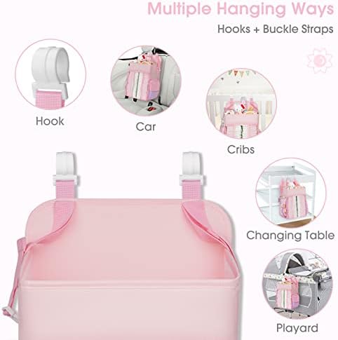 - Multiple Hanging Way- Besides 2 C-clip hook onto all playard frames, this hanging diaper organizer has 2 extra adjustable buckle straps for modern cribs with thicker bar, dresser changing station, pack 'n play and even your car; So good baby stuff for newborn