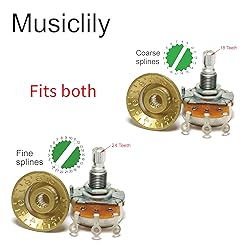 Ideal for Fender Strat style guitar, like Fender USA, Fender Mexico and Squier, or other ST style guitars It is a Universal Fitting design, there are no teeth inside the knob, so it can fit fine spline and coarse spline split shaft pots like CTS and Alpha pots, does not fit solid shaft pots Made in Japan, high quality Made of plastic, numbers 1-10 Set of 3 (1 Volume, 2 Tone)
