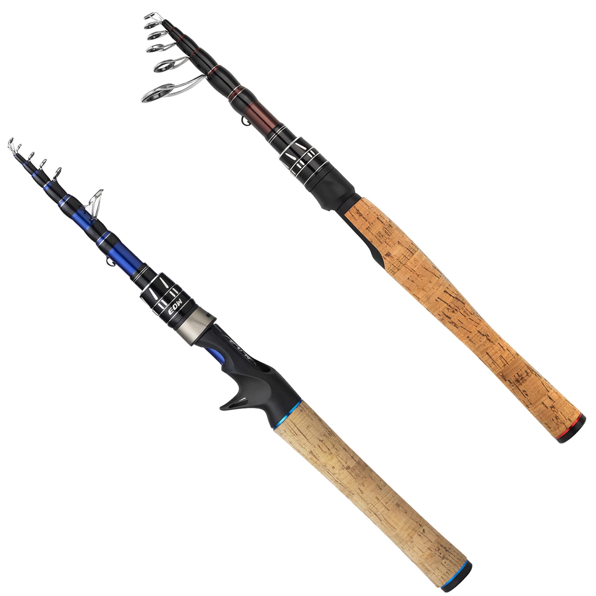 - SUPERIOR QUALITY: EOW XPEDITE telescopic spinning rods are made from 24T carbon and epoxy for sensitivity, durability, and high performance. The tips are solid carbon for flexibility. The reel seats are ABS with CNC aluminum parts and the grips are wear-resistant EVA with cork. With these top-notch components, EOW delivers the perfect portable telescopic fishing rod.