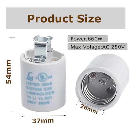 Package Includes: -1x Keyless E26 ceramic socket Specifications: -Max Voltage/Wattage: AC250V / 660W Suitable for installing E26/E27 bulbs,Good replacement when repairing lights such as guest room lights, crystal lights, chandeliers, wall lights and etc.