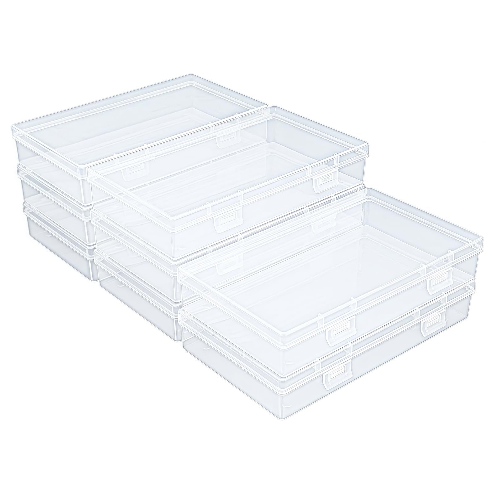 - 6 Pack small rectangular clear plastic containers box with hinged lid storage box case for crafts, tiny bead, jewelry, findings, pills, watch parts and other small items These rectangular clear plastic containers come with double buckles lid and they are made of good quality clear non-brittle plastic with high durability; Smooth seamlessly edges will not hurt your hands and can eliminate the risk of any messy leaking during your travels. Multi-function containers: For storing and organizing small items, such as crafts, beads, coins, jewelry and watch findings. DIY applications: You can keep them as basic storage containers for small items. Good to hold sewing kit, charging cables, fishing lures or hooks and line and any other small item you want to store and carry. Specifications: Shape: Rectangular Material: Clear plastic Each Box Size: 155 x 65 x 30 mm / 6.1 x 2.56 x 1.18 inch (L x W x H) Thickness: about 1 mm Package includes: 6 x Rectangular boxes