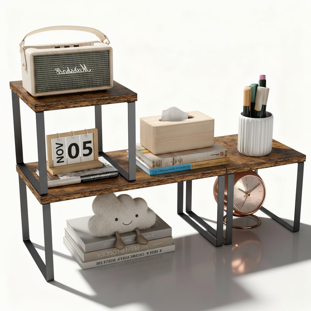- 【Multipurpose Organizer Shelf】Desktop organizer is suitable to be placed on the table in the living room, bedroom, kitchen, office. Can store potted plants, cosmetics, staplers, alarm clocks, decorations or other office supplies.
